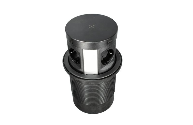 Блок розеток выдвижной вертик.4 розетки. Беспроводная зарядка. черный