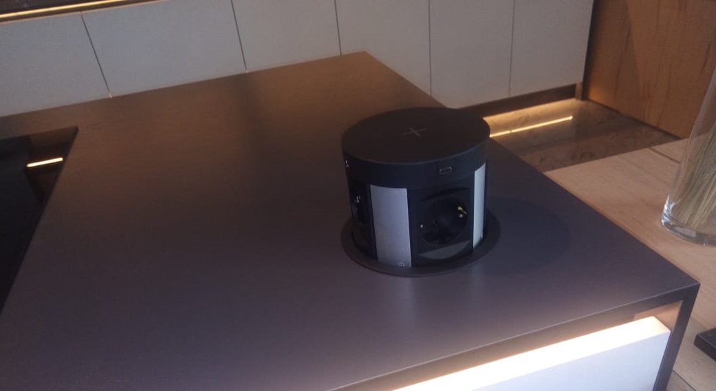 Блок розеток выдвижной вертикальный с беспроводной зарядкой