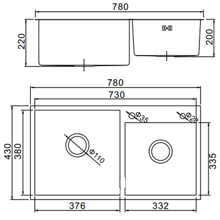Габариты мойки: 780 х 430 х 220 мм